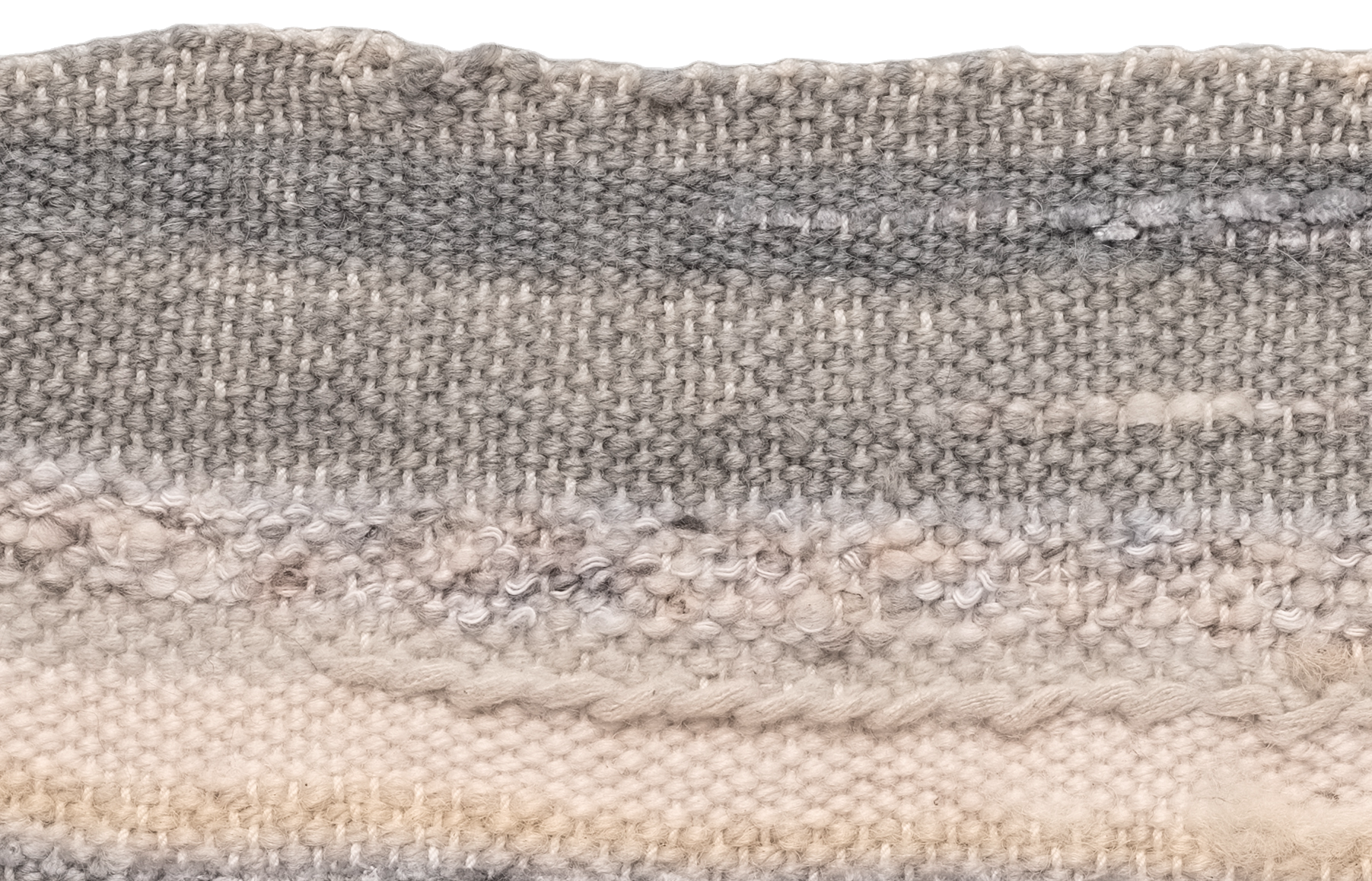Across the years, a consistent theme has guided Cradock’s weaving: revealing positive elements of the natural world that exist quietly within everyday life but are easily overlooked. Her tapestries aim to make visible small but meaningful signs of resilience, beauty, and hope. In earlier works, she created panels depicting the subtle beauty of fields glimpsed from train windows—passing landscapes that most people notice only briefly. More recently, she has explored the intricate texture and depth of tree bark, as seen in works such as Grove of Birch Tree Trunks, where close attention to surface, pattern, and variation reveals the quiet richness of the natural world.