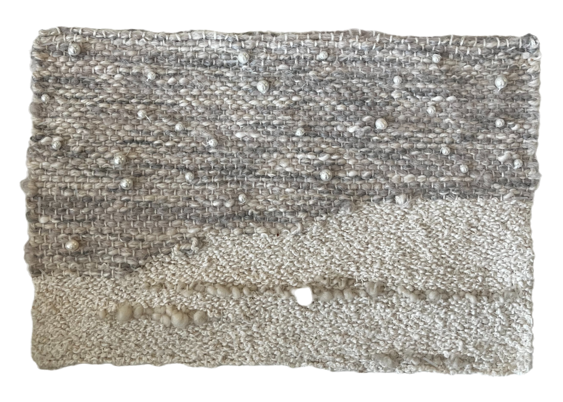Carroll Cradock began teaching herself to weave shortly after completing graduate school in psychology. Working first on a four-harness table loom and a rigid heddle loom, she was drawn from the outset not to functional textiles but to creating original tapestries. She designed both the images and the weaving structures herself, motivated by a desire to make something entirely her own after the limited creative freedom she experienced during graduate school. Over the past decade, she has expanded her skills through courses at the Art Institute of Chicago and the Chicago Weaving School. From the beginning, her work has featured multilayered compositions, often constructed from panels that interact visually to create depth and complexity.